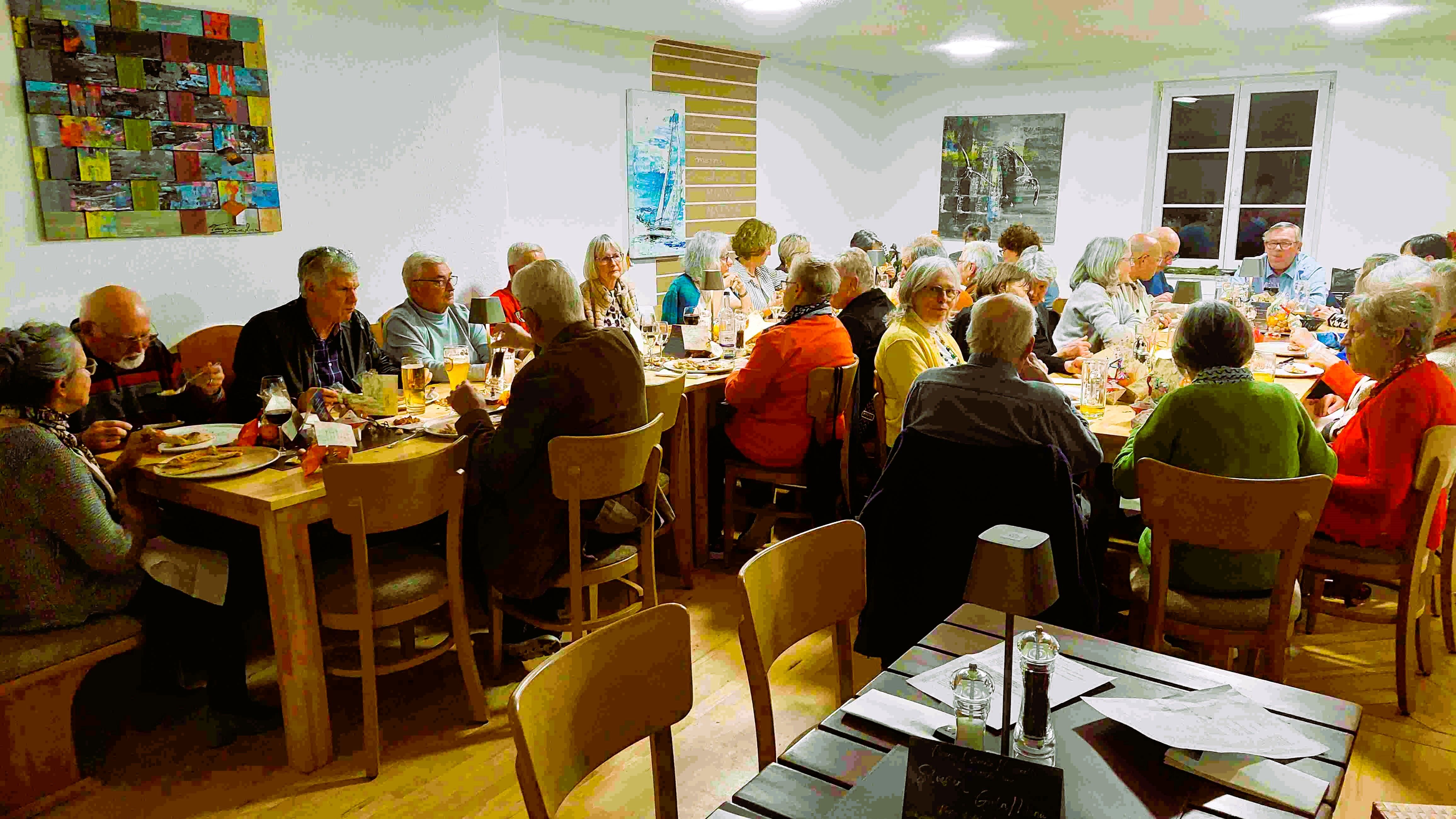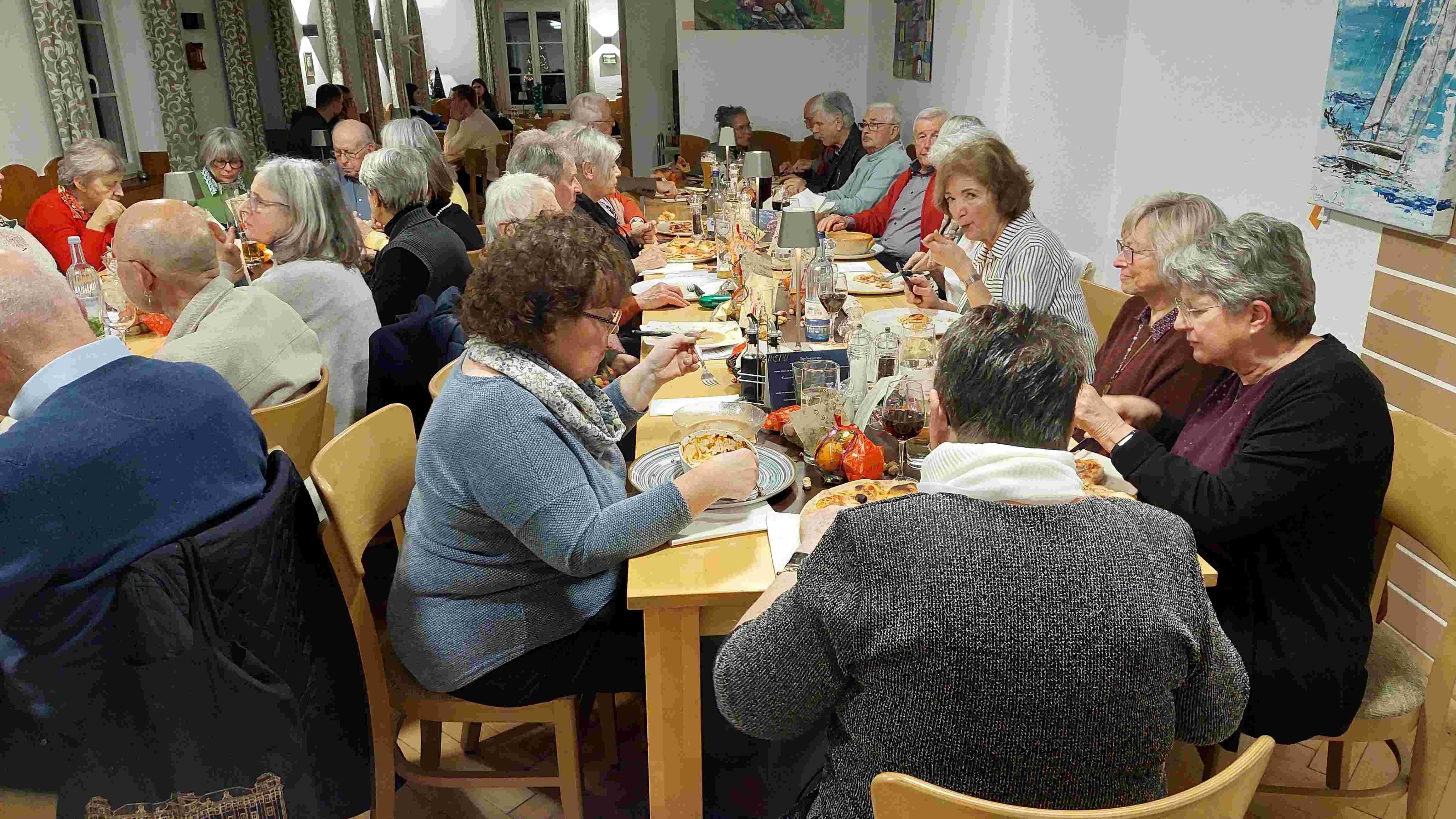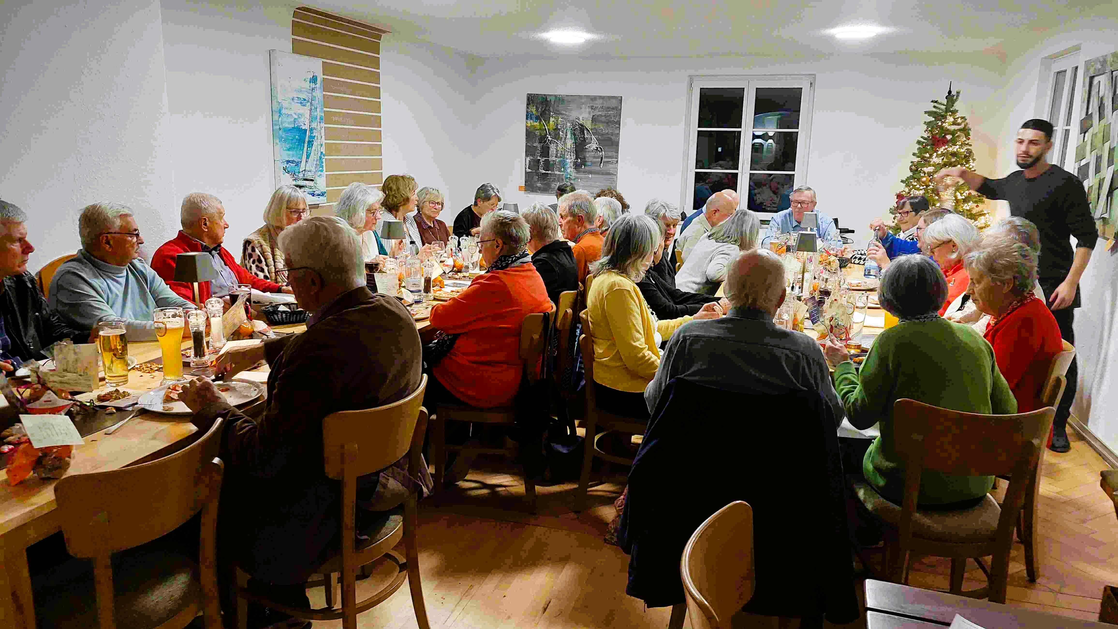 Nach einem kurzen Rückblick vom Vorsitzenden Manfred Weißenrieder über das bald vergangene Jahr war der Höhepunkt bei der Jahresabschlussfeier unser Nikolaus mit "gewählten" Worten unterstützt von seiner Frau Karin. Die Freude am Essen wurde mit Gutscheinen von Margot, Jutta, Claudia und Bruno in Anbetracht ihrer runden Geburtstage unterstützt.